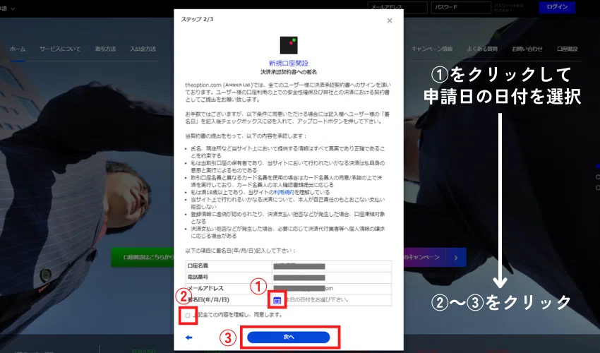 2:「口座開設はコチラから」の緑ボタンをクリック
